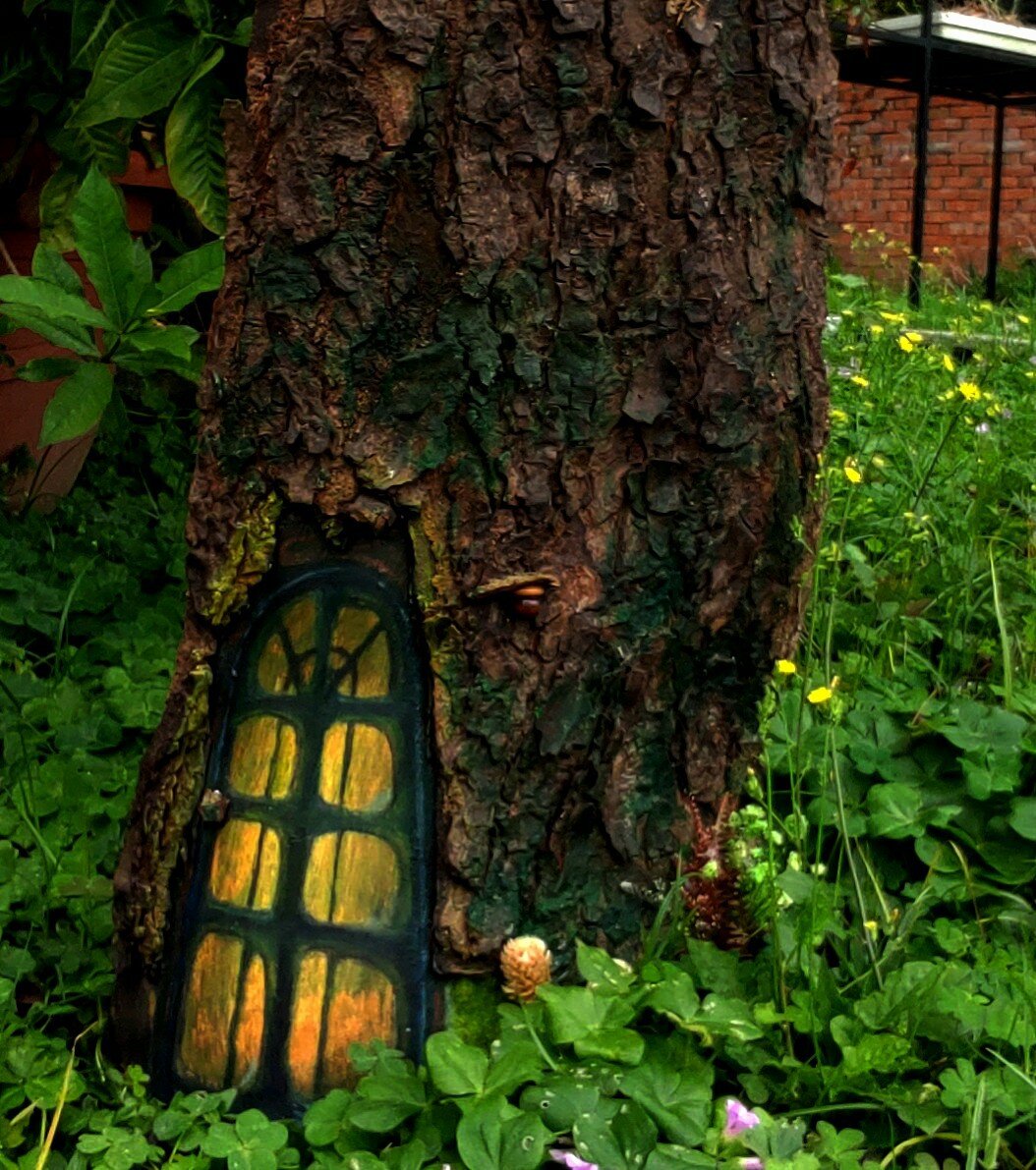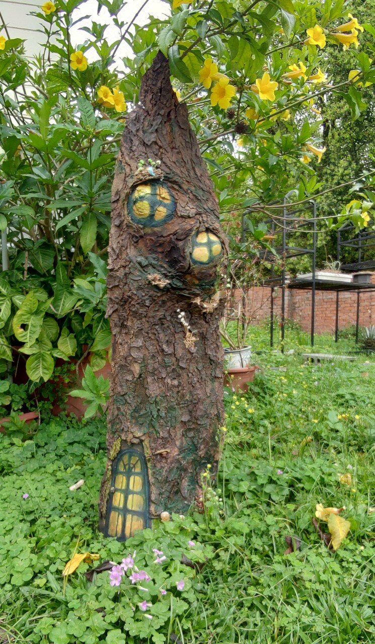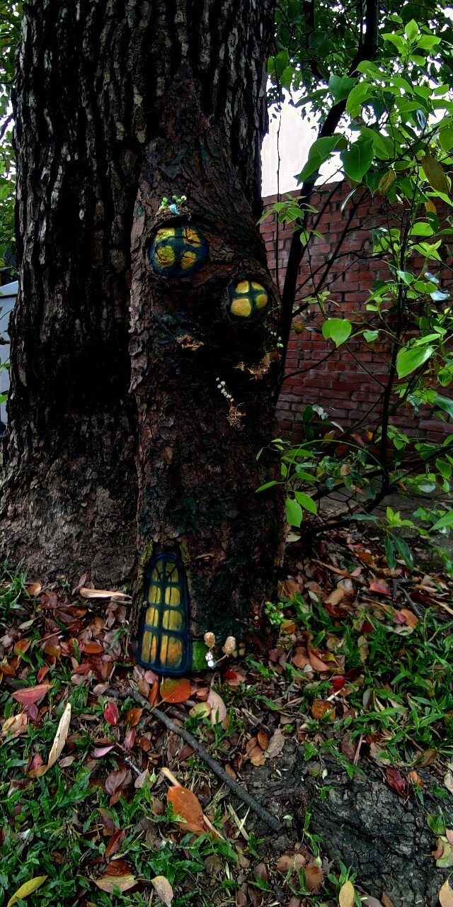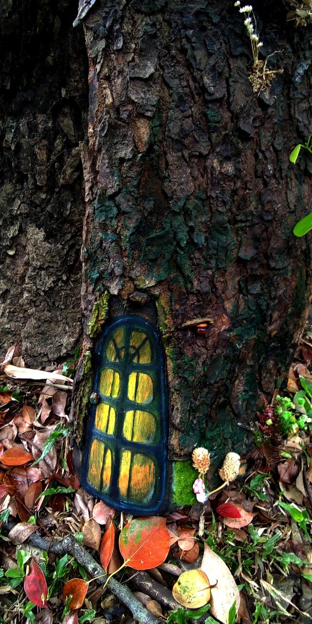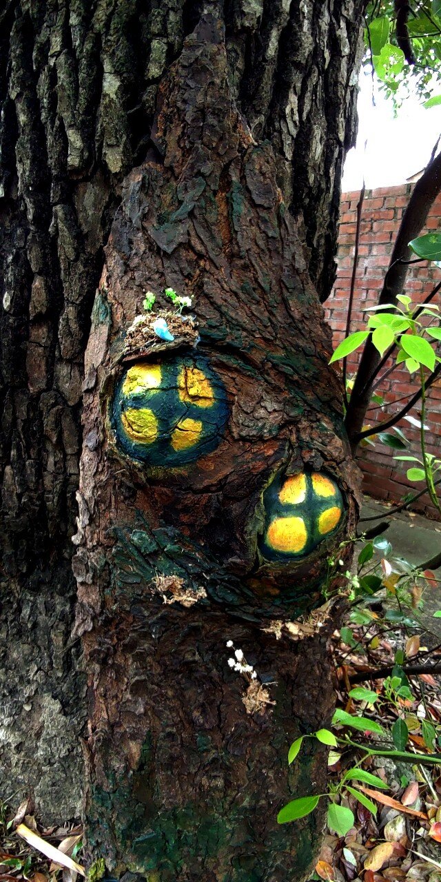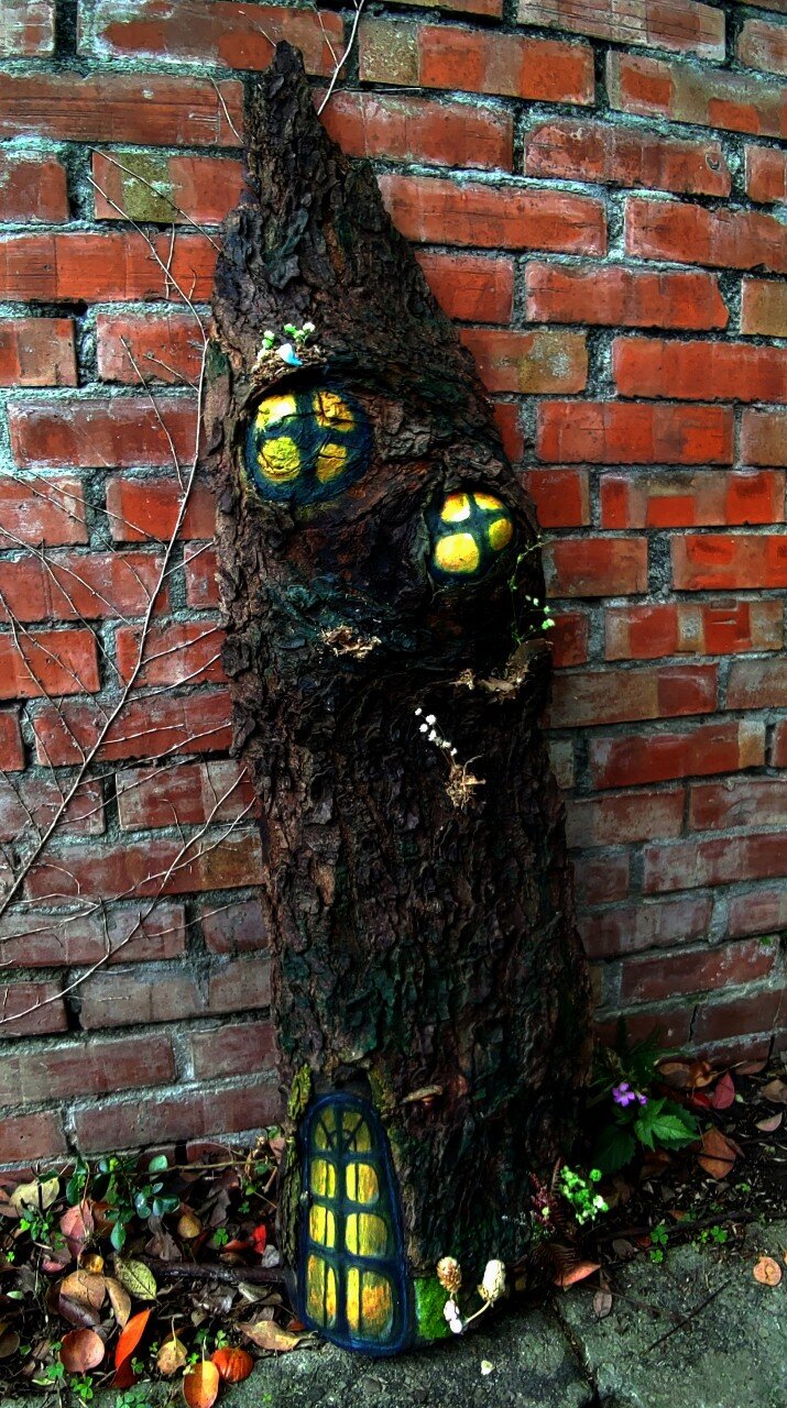 運用木片原有解構造型,創作繪畫成一棟宛如一棟精靈巨著的小木屋,以油畫顏料彩繪,不退色,可長久維持色調。